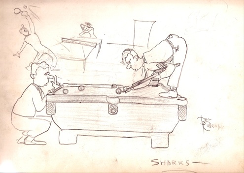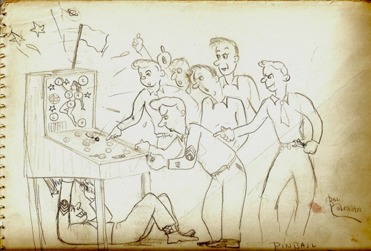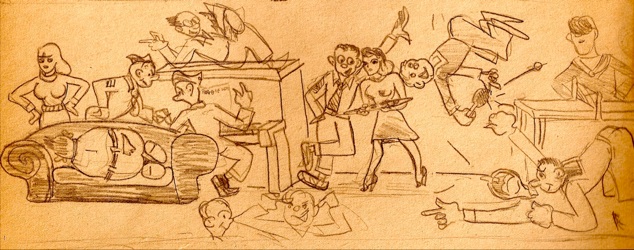 In 1943 at the beginning of my senior at Pottsville High School (PA), I was asked to do a large mural at the newly opened downtown USO Club. The invitation came because I was known for the cartoons I drew in high school. Later I will add a section containing some of these early cartoons.