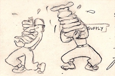 Below is a rough sketch for the mural. When the mural was finished it was between fifteen and twenty feet long and five or six feet tall.