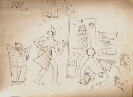 The above cartoon was drawn shortly after I was discharged in the summer of 1946. A few were drawn when I was in basic Infantry training. Of course, none were drawn while I was in combat. Some were drawn while I was still eighteen, some after I turned nineteen.